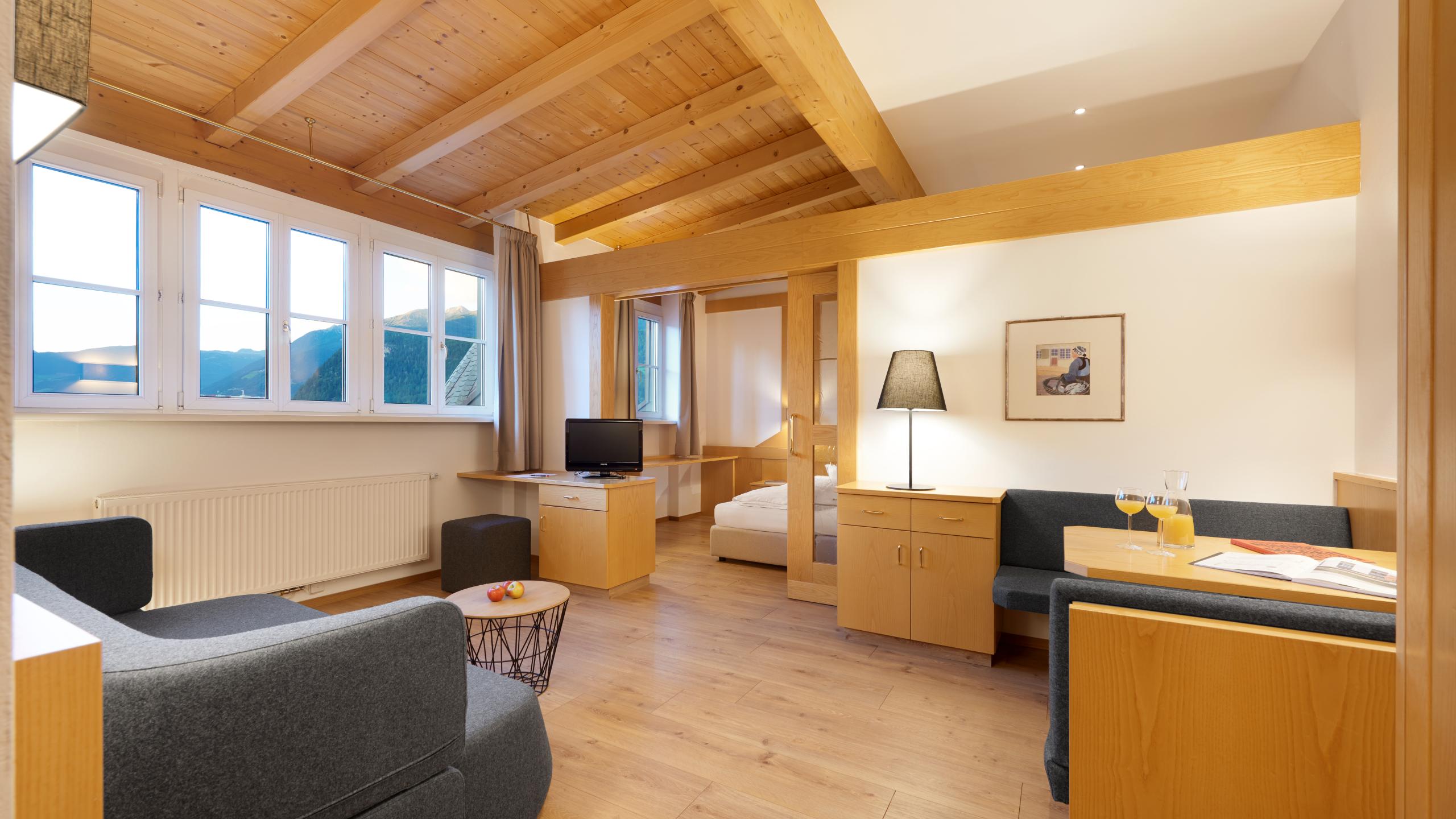 Das stilvolle Ambiente, die modernen Annehmlichkeiten und der Panoramablick auf die umliegende Bergwelt und das städtische Treiben sorgen für wahre Wohlfühlmomente.